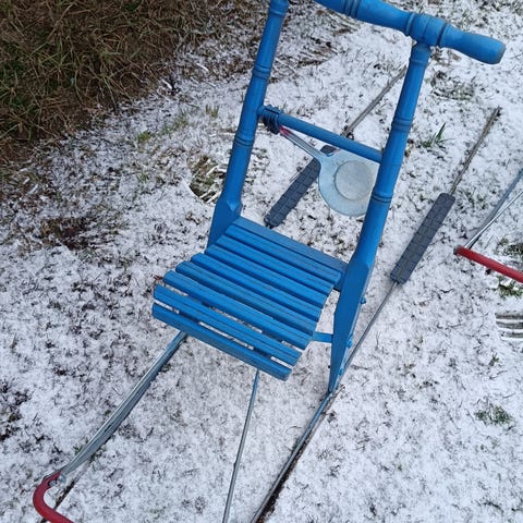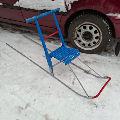 Aito Eslan potkukelkka kokoa T2 eli lasten koko puuosat kunnossa vain maalia lähtenyt ja jalakset suorassa ja kunnossa.