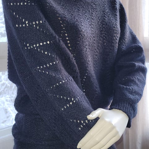 Pari kertaa käytetty Hennesi mohair blend ruskea muhkea neule. Runsas poolokaulus. En löydä kulumaa. Koko XS mutta isoa kokoa, sopii ainakin vielä M-kokoiselle hyvin. Kuvassa L-kokoisella ja on harteista pieni. Neulos on sekoite keinokuitua ja villaa, kuvissa tarkempi tieto. Kai-kai 56cm ja pituus olalta 73cm. Joustaa paljon, on kevyt ja pehmeä. Vieno hajuveden tuoksu mukana, en ole pessyt tai tuulettanut, lähtee varmasti ainakin lähes kokonaan pois.