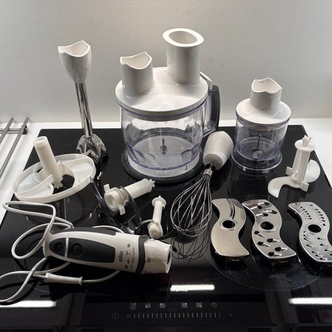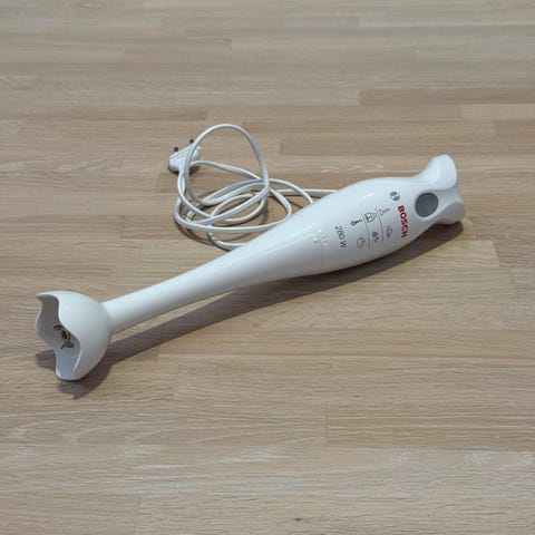 Bosch sauvasekoitin, valkoinen väri, sisältää kaksi erilaista sekoitusosaa, jotka konepestäviä. Laitetta käytetty maksimissaan kymmenisen kertaa.