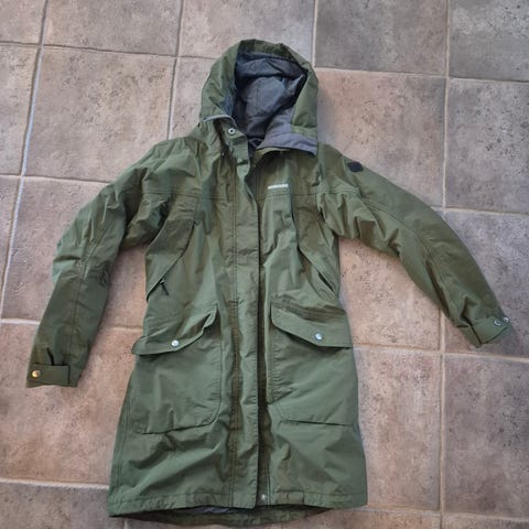Erinomainen takki ulkoiluun ja esim hiekkalaatikolla seisoskeluun. Reilu koko ja alle mahtuu hyvin kevyt toppatakki, jolloin on hyvä myös pikkupakkasilla.