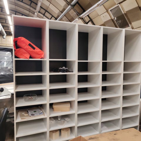 Voi kiinnittää seinään, useamman kappaleen yhdistämällä saa tehtyä esim. postin lajitteluun hyllykön konttorille.