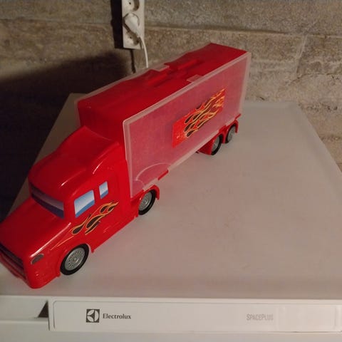 Autonkuljetusrekka, nupin saa irti ja kyytiin mahtuu noin 20 pikkuautoa. Hyvässä kunnossa seuraavalle kuskille.