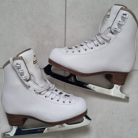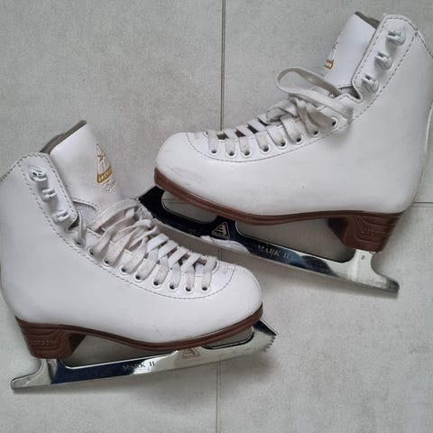 Hyvässä kunnossa olevat Jackson Excel taitoluistimet, koko 32. Terä Mark II, teroitusvaraa jäljellä. Pohjallisen pituus 20.5 cm. Luistimet olleet yhden kauden käytössä. Toisessa varressa hyvin pieni pintamurtuma, ei vaikuta käyttöön.