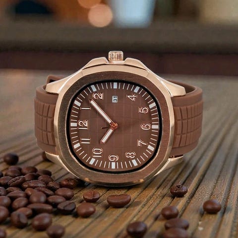 Aquanaut-tyylinen teräskello 42mm – oranssi silikoniranneke, päiväys, lume