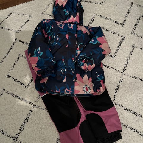 todella hyväkuntoinen lasten toppapuku. ripustuslenkki on katkennut. koko 116cm