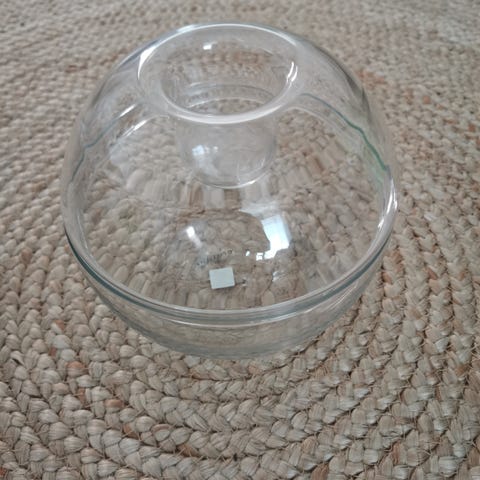 Punainen lasinen kulho. 18.5 cm korkea ja halkaisija 27.5 cm. Hinnasta voi keskustella.