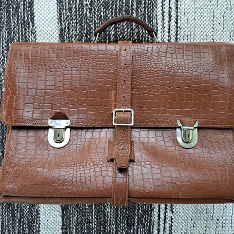 Nahkainen ruskea salkkumallinen olka-/käsilaukku, vintage, valmistaja North Bag