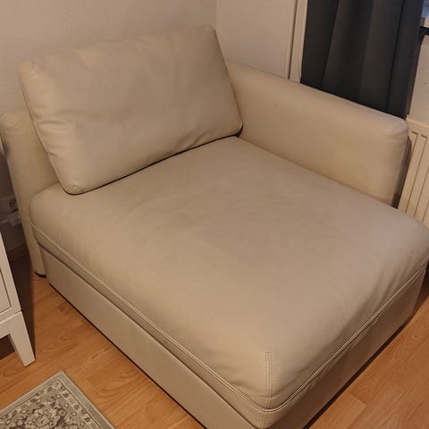 Valkoista keinonahkaa, ok kunnossa, pieniä käytön jälkiä.