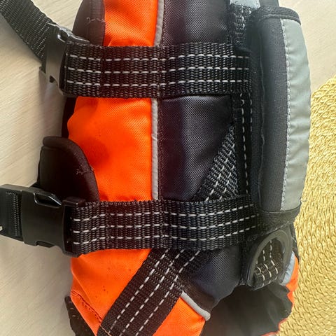 Paljon lenkkejä ja taskuja leluille, herkuille ja omillekin tavaroille.