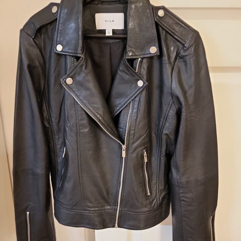 Vilan musta nahkatakki. Ollut päällä pari kertaa eli on täysin uusi. Kunto erittäin hyvä. 100% nahkaa. Myynnissä myös muualla.