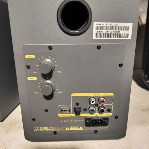 Aktiivikaiutinpari, muuntaja ja 3,5mm plugilla johto.