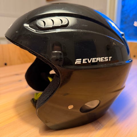 Everestin laskettelukypärä lapselle. Koko 50-54 cm. Siistissä kunnossa suoraan käytöstä isomman tieltä. Takana kiinnikke laseille.