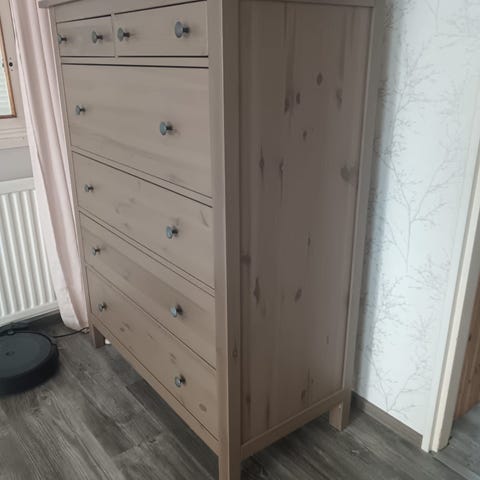 Kuvan mukainen Laulumaa valmistama lipasto. Taso ja laatikoiden runko massiivi puuta.