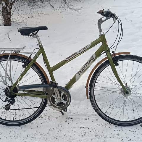 Erittäin siisti ja hyväkuntoinen Tunturi Akseli de Luxe pyörä. Pyörä on myös juuri huollettu. Nexuksen 3 vaihteinen kappavaihde. Hyvät 28" renkaat ja suorat vanteet. Edessä käsijarru ja takana jalkajarru.