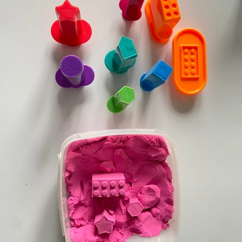 Myydään laatikollinen taikahiekkaa ja linna-aiheiset muotit. Laatikon paino sisältöineen 3,5kg. Nouto Leinolasta.