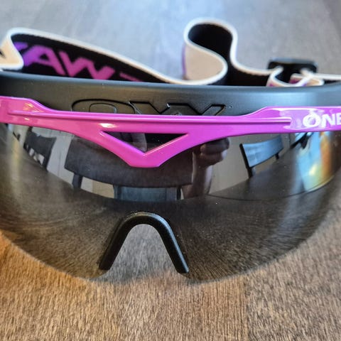 One Wayn ylöskäännettävä hiihtovisiiri kolmella eri linssillä: kirkkaan auringonpaisteen, harmaan lumikelin (kiinni kuvissa) ja hämärään kirkas linssi.