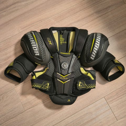 Bauer JR Medium jääkiekkosuojus mustassa ja keltaisessa värissä. Suoja on suunniteltu jääkiekkoon juniorikokoisille pelaajille.