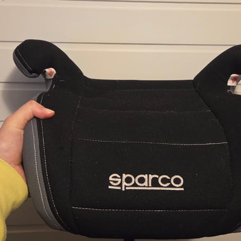 Siistissä kunnossa oleva Sparco merkkinen sini/musta istuinkoroke 15-36 kg painavalle lapselle. Päällisen voi irrottaa ja pestä. Käyttöohjeet mukana.