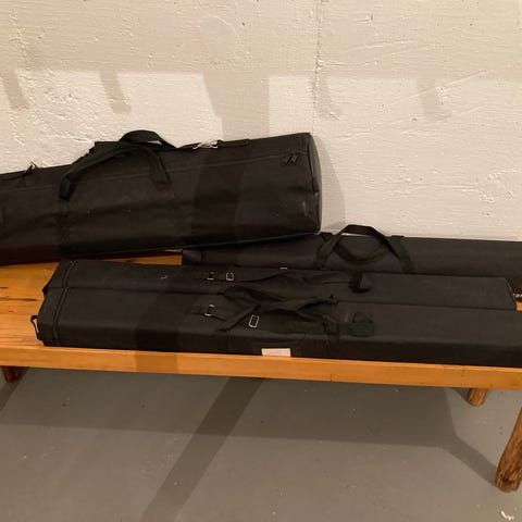Kolme laadukasta ja hyväkuntoista pari kertaa messuilla käynyttä roll-up-telinettä kantolaukkuineen. Vuodan leveys kaikissa 1 metri. Vuodat paikoillaan. Kaikki yht. 50 eur. Kaupan päälle neljäs teline ilman kantolaukkua.