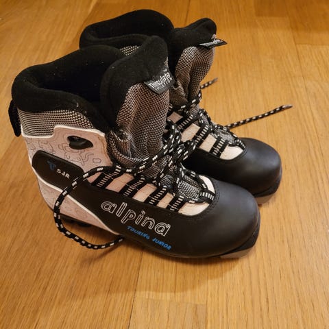 Alpina lasten hiihtomonot, koko 33. Monot ovat unisex-mallisia ja sopivat sekä tytöille että pojille. Väri musta ja punainen. Mukana irrotettava pohjallinen. Pohjallisen pituus 21,5 cm. Uutena ostettu ja vähän käytetty.