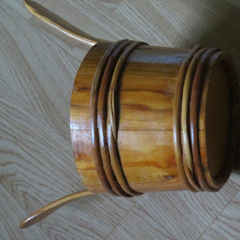 Vanhanajan puuastioita muistuttavia koriste-esineitä/pienoismalleja, kaksi kappaletta. Isompi on mitoiltaan n. 10 x 5 cm ja pienempi n. 4 x 4-5 cm. Molemmat yhteensä 10€.