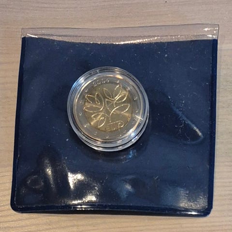 Suomi 2 euron juhlarahat, yhteensä 4 kappaletta. Kolikoissa näkyy erilaisia juhlateemoja. Mukana kolikot ja suojapussit.