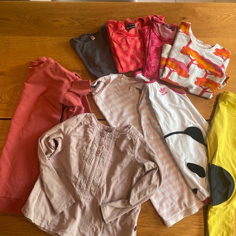 Housuissa polvessa reikää, muutoin paikoin värikulumaa ja muutaman hailakan tahran huomasin.