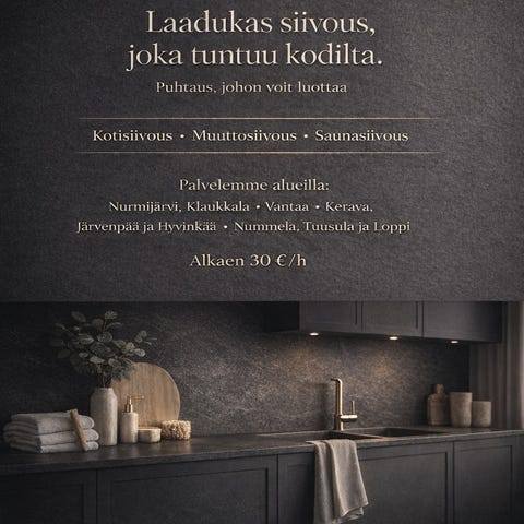 Hei! Tarjoan muuttosiivousta ja perusteellista siivousta Porvoossa ja pääkaupunkiseudulla.