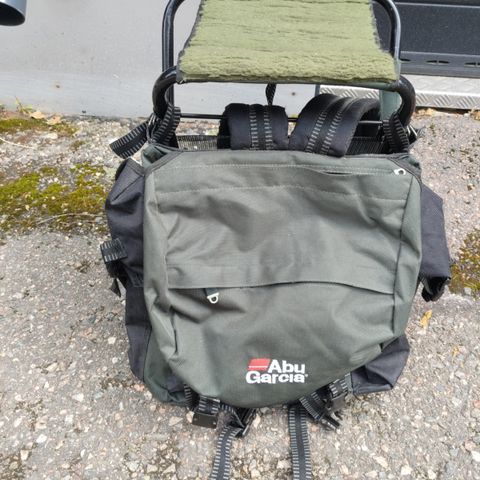 Abu Garcia lasten kalastusreppu mustalla värillä. Reppu sisältää säädettävät olkaimet, useita taskuja kalastusvarusteiden säilytykseen ja pehmeäpintaisen jakkaran. Sopii kalastukseen ja ulkoiluun. Reppua ei ole koskaan käytetty.