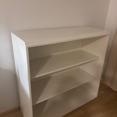 Hyllyjen korkeus säädettävissä, kunto hyvä kanttaa lukuunottamatta (käyttöjälkiä).