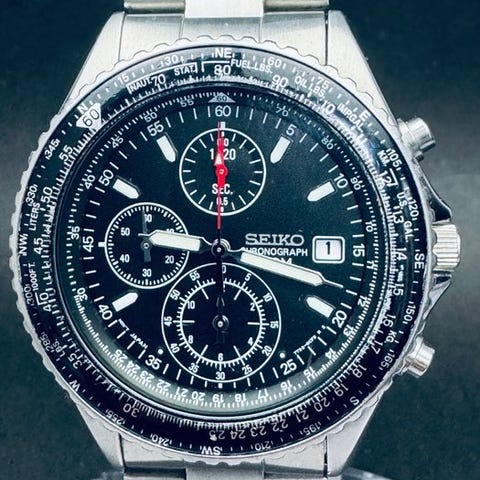Model: Seiko SNAC069P1 7T62-0JH0 Kronografi Musta kellotaulu Maailmanajan kehä Miehen 100 m sukelluskello Kvartsikronografi.