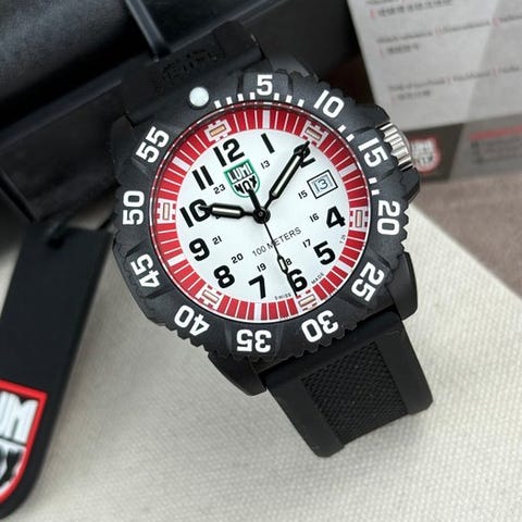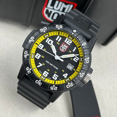 Upea ja kestävä Luminoxin kello, Sea Lion -sarjasta. Referenssinumero X2.2059.1. Kello on varustettu mustaksi päällystetyllä kotelolla ja se toimii kvartsikoneistolla (515, Ronda, Swiss Made). Varustettu luminoivilla osoittimilla ja indeksillä, yksisuuntaisella bezelillä ja päivämääränäytöllä klo 3-positionsa. Kello on kevyt ja mukava käyttää muovisen kotelonsa ansiosta. Hyvin luettavissa oranssin taustan ja mustien yksityiskohtien ansiosta.