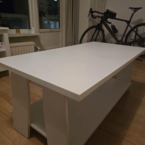 Valkoinen sohvapöytä metallijaloilla