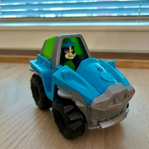 Myydään vähän leikitty Ryhmä Hau Rex ja ajoneuvo.
