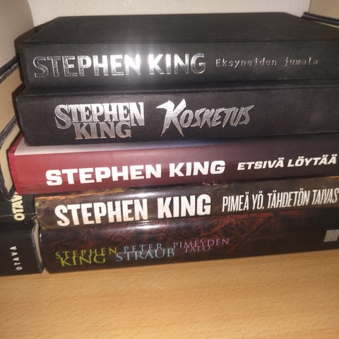 Valtavasti Kingin kirjoja. On kovakantisia ykköspainoksia, uudempia painoksia sekä pokkareita sekä suomeksi että englanniksi. Hinnat alkaen 5€ ja postikulut päälle.