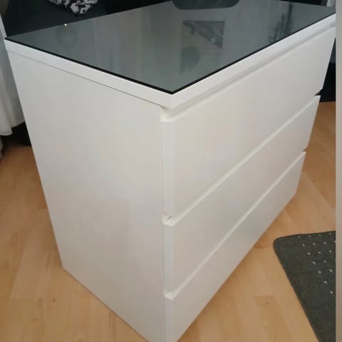 Valkoinen lasilevy joka ollut Malm lipastojen päällä. Soveltuu muuhunkin.