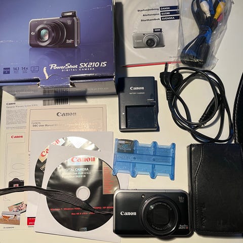 Kaikin puolin toimiva Canonin pienikokoinen pokkarikamera ja sen säilytyslaukku. Mukana myös muistikortti. Kamera toimii AA-paristoilla, joten ei tarvitse huolehtia akuista ja latureista. Nouto / postitus