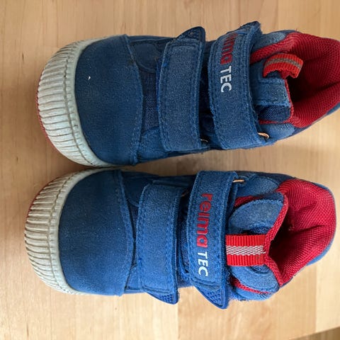 Reima Tec lasten kengät, koko 22, unisex. Väri on tummansininen punaisilla yksityiskohdilla. Kengissä on tarrakiinnitys. Hyvässä käytetyssä kunnossa, kissatalous, ei sisäilmaongelmia.