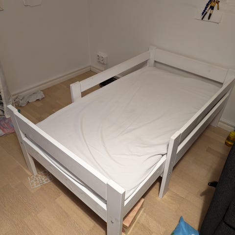 Myydään Emma jatkettava sänky ja siihen kuuluva sängyn aluslaatikko. Erinomaisessa kunnossa ja oikein siisti. Ainoa moite laatikon pohjassa vähän piirrustelua. Mukaan saa halutessaan jatkopalallisen patjan ja halutessaan sen päällä aina olleen kastelusuojan. Patja myös siisti ja hyvässä kunnossa.