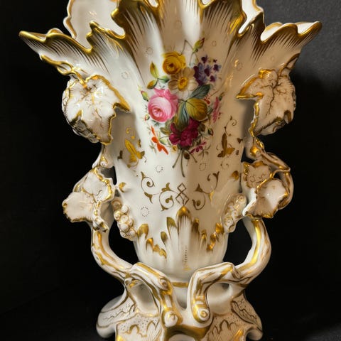 Tämä vaikuttava ranskalainen amfora-vaso on upea esimerkki varhaisen 1900-luvun hienostuneesta metallityöstä. Florale Repoussé -ranne muodostaa tämän esineen ytimen; yksityiskohtaiset kukkamuodot on muotoiltu sisäpuolelta mestarillisesti, luoden elävän leikittelyn valon ja varjon välillä lämpimällä messingillä. Tyylikkäät, korkealle kohoavat korvat vahvistavat pystysuoraa siluettia ja viittaavat klassiseen estetiikkaan, joka oli niin suosittu Fin de Siècle -Ranskassa. Tämä ei ole pelkästään maljakko, vaan veistoksellinen lausunto, joka huokuu käsityötaitoa ja historiaa.