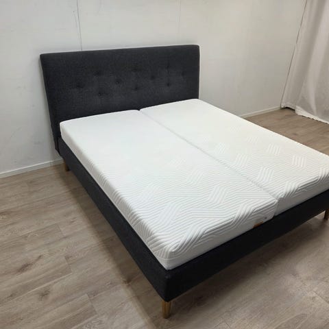 Myydään erittäin hyväkuntoinen ja tyylikäs sänkykokonaisuus, jossa laadukas runko ja kaksi Tempur Original Supreme -patjaa. Ajaton harmaa kangasverhoilu ja tukevat puujalat sopivat monenlaiseen sisustukseen.