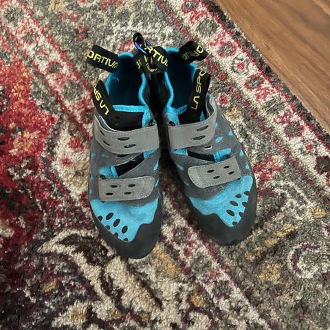 La Sportiva Tarantula , koko 43, kiipeilykengät, väriltään vihreät. Kengissä on tarrakiinnitys ja ne on ovat loistava valinta aloittelijalle boulderointiin tai kiipeilyyn. Käytetty vain kerran boulderoinnissa eli ovat erinomaisessa kunnossa.