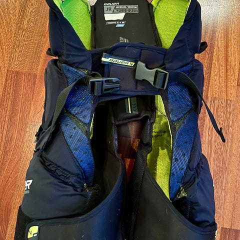 Bauer Supreme AC Pro girdle koko INT medium. Tosi laadukkaat ja kevyet housut. Saat kaupan päälle mustan suojahousun.