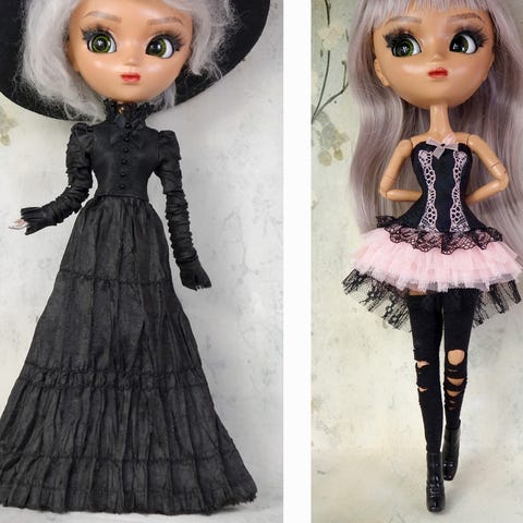Pullip Obitsu Blythe nukelle musta pitkä mekko ja korsettimekko