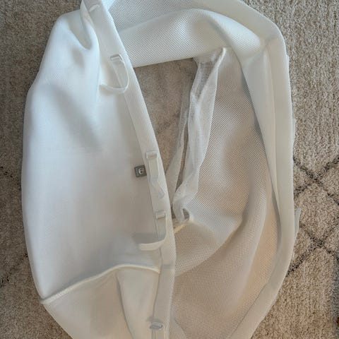 Valkoinen Stokke-reunapehmuste Stokke Sleepi Mini -sänkyyn. Sisältää useita kiinnitysnauhoja, joilla se pysyy paikoillaan. Siistissä kunnossa ja helposti konepestävä. On pesty myyntiä varten hajusteettomasti.