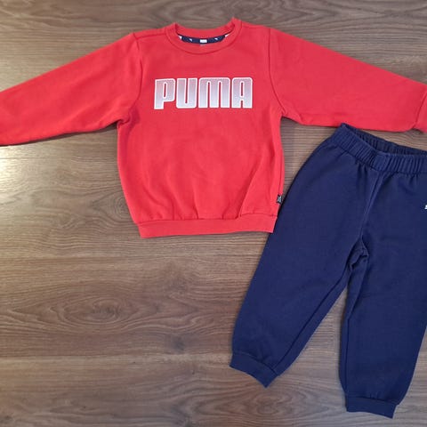Puma lastenvaatteet, koko 98, väri vaaleanpunainen, suunniteltu tytöille. Setti sisältää pitkähihainen pusero ja housut. Toinen setti Creamie merkkinen