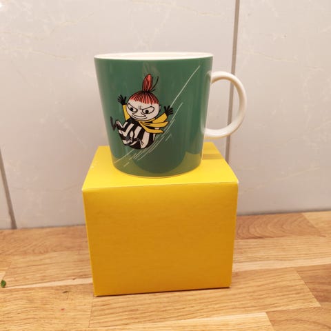 Paketissa 6 minimukia, jotka ovat Nuuskamuikkunen sininen, muumipappa tuumiskelee musta, muumimamma ja marjat punainen, niiskuneiti ja aarrearkku keltainen, muumipeikko jäällä ja pikku myy liukumäessä vihreä. Mukit vuosilta 1999-2002. Käyttämättömät, paketissa olleet. Paketin taakse hintalapusta jälki.