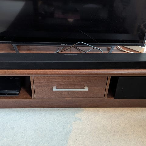 Sopivan pituinen ja korkeudeltaan kompakti funkkistyylinen televisiotaso. Jalat hienoa särmikästä rosteriterästä. Kaksi hyllytasoa kestävää kirkasta lasia. Muitakin käyttökohteita on - esim. kukkapöytä, äänilaitteiden teline ym.