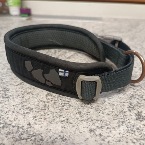 Hurtta puolikuristava ja pehmustettu kaulapanta. Koko 45 cm. Helppo ja nopea pukea. Kunto erinomainen.