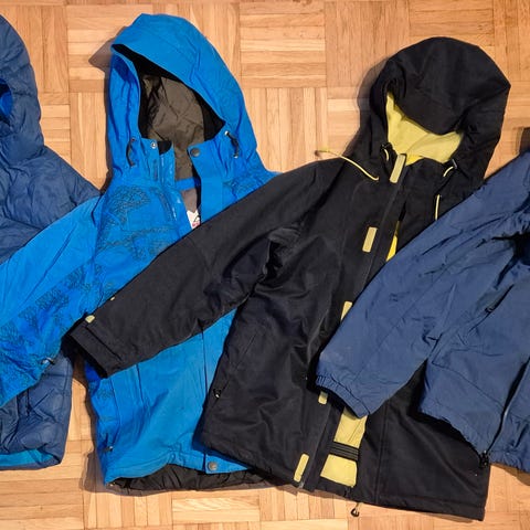 Poikien talvi/laskettelutakki Firefly. Muuten hyväkuntoinen mutta selkäpuolella mopolla ajosta rasvatahroja (kuva). Lumilukko helmassa.